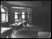Ripresa interno. Sala da pranzo nell'hotel Tirolia, a destra un grammofono su un tavolo.