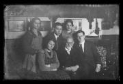 Ripresa interno. Ritratto di gruppo di sei persone: il fotografo Hermann Waldmüller e cinque dei suoi bambini
