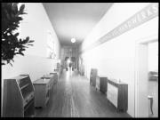 Ripresa interno. Corridoio lungo con oggetti esposti. Sul muro la scritta: "degli apprendisti artigiani della provincia - Landesmusterschau der Lehrlinge des Handwerks"