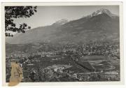 Vista da Marlengo: la città di Merano, Tirolo, il Picco Ivigna e la Punta Cervina