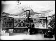 Ripresa inerno. Stand sulla produzione di birra. Quattro manifesti con i titoli "fabbricazione della birra. Malteria", "fabbricazione della birra. Cottura", "Fabbricazione della birra. Fermentazione e imbottigliamento e infustazione", "Ciascuna delle derrate sotto[...] corrisponde al valore nutritivo di 1/2 litro di birra ovverosia a 250 callorie". Bottiglie di birra. Casse di birre con l'iscrizione "Birra Forst" und "Birra S. Sixtus"