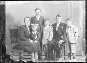 Ripresa in studio. Ritratto di gruppo di due uomini, una donna, due bambini e una bambina. Informazione nel registro [nr. 7]: Langebner Maria